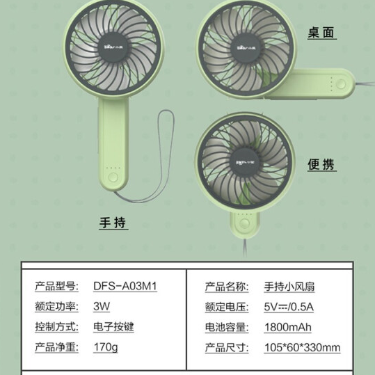 小熊 手持風(fēng)扇 小風(fēng)扇 便攜式 DFS-A03M1 上海禮品定制