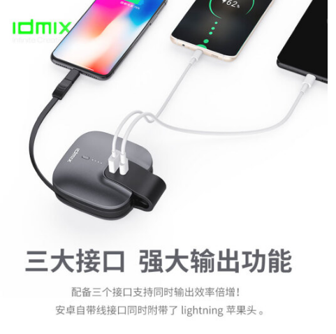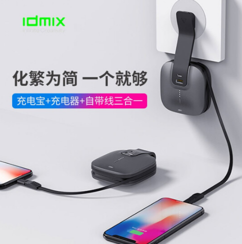 IDMIX 移動電源自帶插頭充電寶自帶線三合一旅充充電器